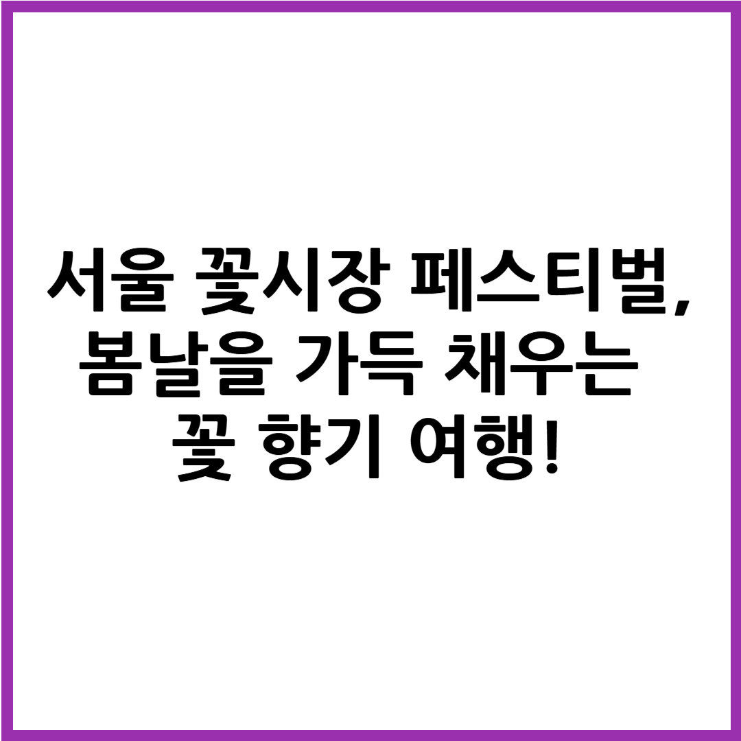서울 꽃시장 페스티벌은 매년 봄, 서울 양재동에 위치한 양재꽃시장에서 열리는 대형 꽃 박람회입니다.